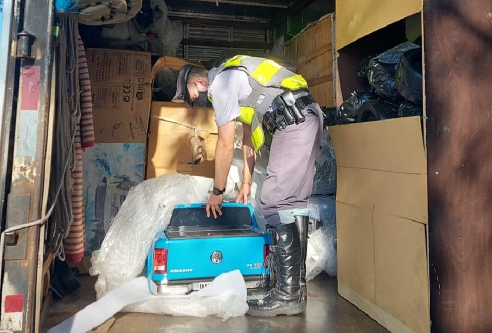 Durante a vistoria no interior do baú, em meio a uma carga de mudança, foram localizados 15 carros elétricos infantis e um robô elétrico. Os produtos foram avaliadas em cerca de R$ 50 mil, são oriundos do Paraguai e não apresentavam nenhuma documentação fiscal.