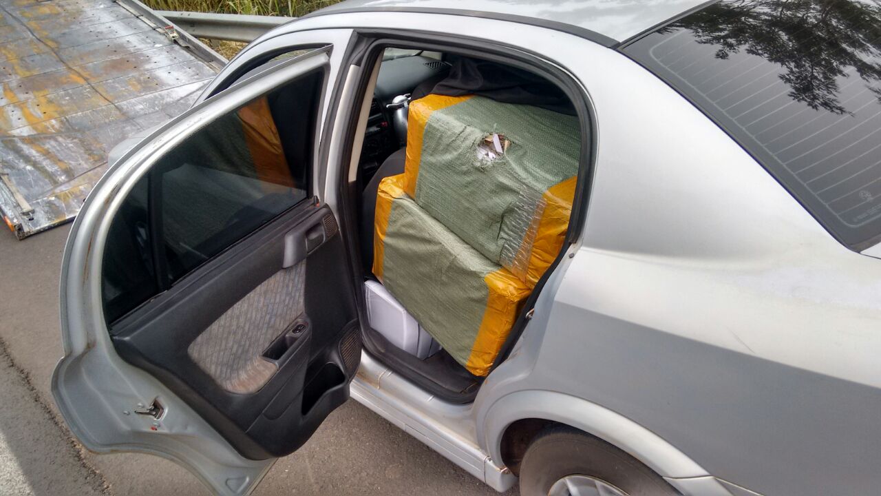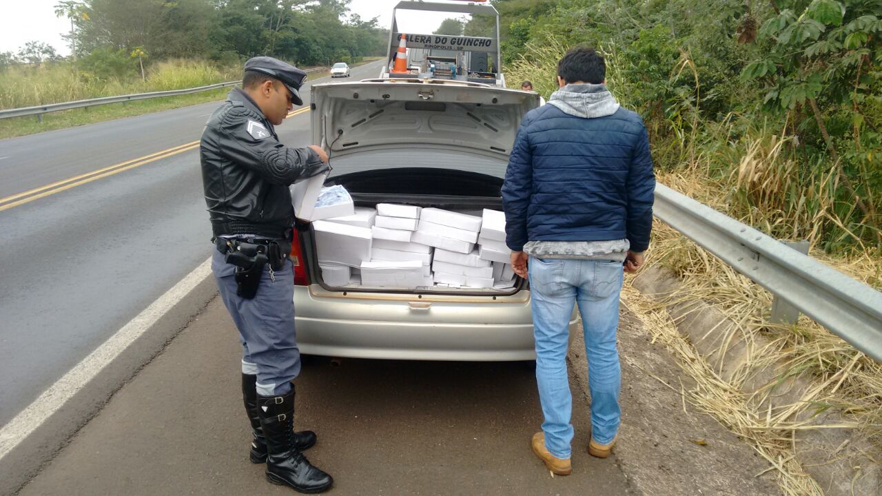 O carro com placas de Rinópolis, era conduzido por um homem de 36 anos, que foi preso em flagrante delito por contrabando e descaminho e encaminhado à Delegacia de Irapuru.
