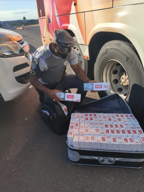 Segundo a corporação, a ocorrência teve início por volta das 17h. Um ônibus de linha interestadual foi parado para ser vistoriado na Rodovia Raposo tavares (SP-270). Na mala de um passageiro, os policiais encontraram 101 pacotes de cigarros de origem estrangeira e sem documental fiscal.