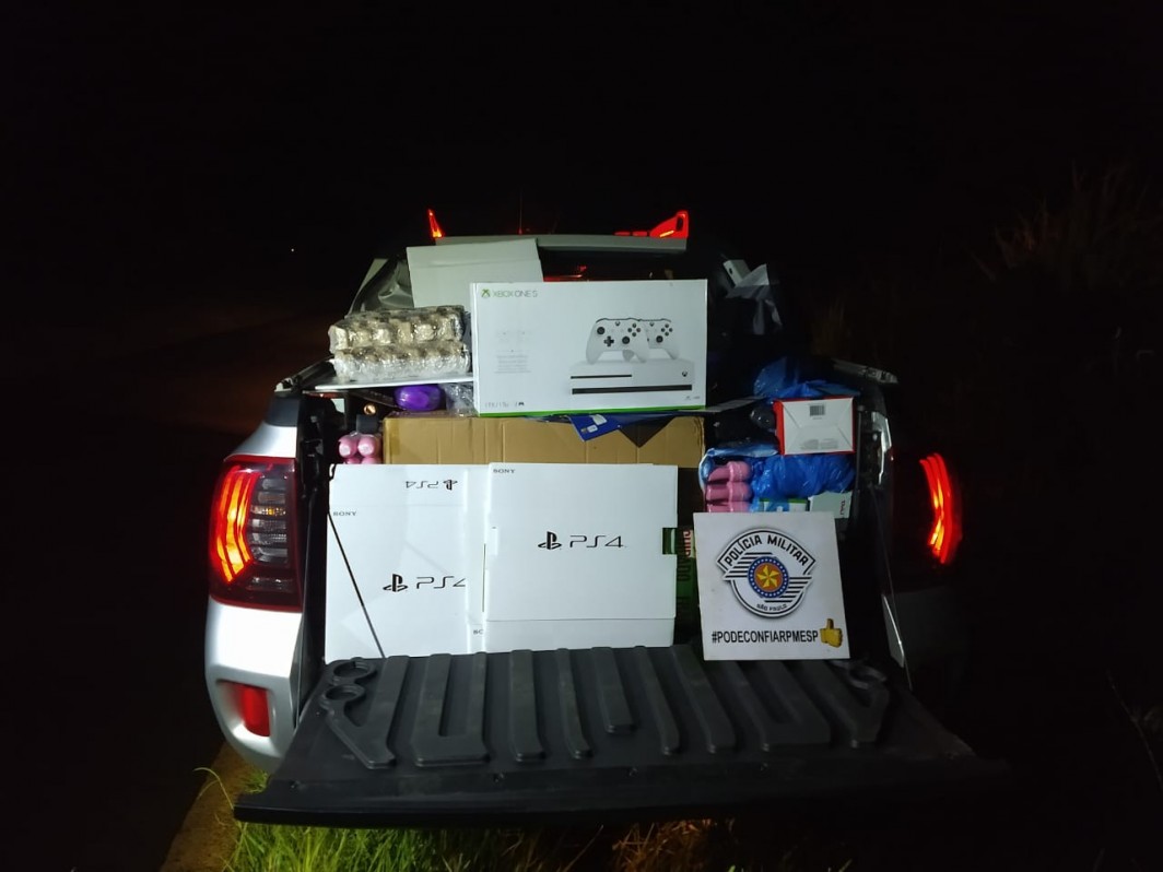 Durante vistoria veicular constataram a presença de produtos desprovidos de qualquer documentação fiscal (Descaminho), dentre eles: Eletrônicos (Vídeo Games, Overboards), artigos para pesca, cosméticos variados e perfumes. O condutor relatou haver adquirido tais mercadorias em Salto del Guaíra/PY, em data anterior e, revenderia na cidade onde reside.