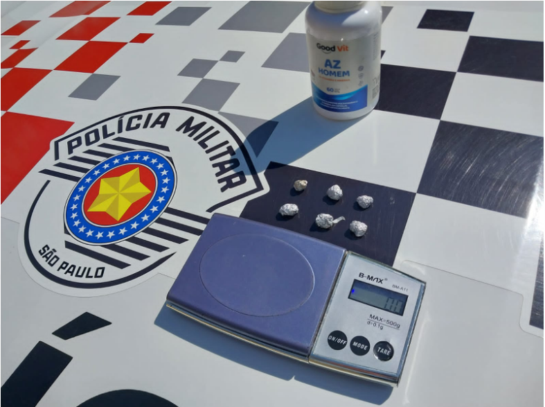A equipe se deslocou ao local e logrou êxito em abordar o autor, um homem de 30 anos, e a testemunha, mulher 43 anos, sendo informados sobre a denúncia. Foi franqueada a entrada dos policiais e durante vistoria da equipe no local indicado na denúncia, um fogão nos fundos da residência, foi localizado um frasco branco contendo seis pedras de crack.