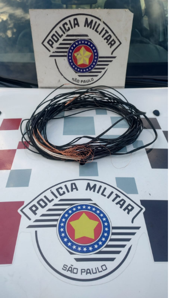 Ao chegar no local, foi possível verificar dois indivíduos maiores de idade e um menor subtraindo fios que estavam instalados pela Praça da Bandeira