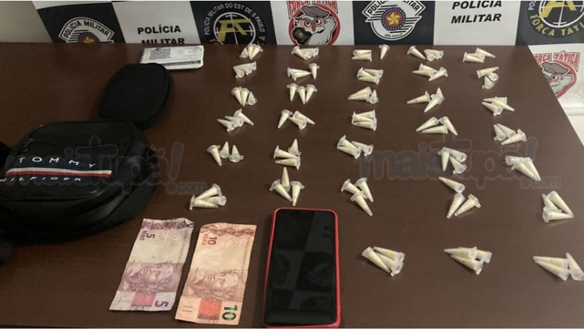 Ao ser dada a ordem de parada, o motociclista ainda tentou avançar por cerca de 50 metros antes de parar. Em seguida, foi realizada uma abordagem rigorosa. Durante a revista pessoal, os policiais encontraram uma pochete escondida sob a blusa do suspeito. Dentro da pochete, havia uma pequena bolsa contendo 99 pinos de crack e a quantia de R$ 15,00 em dinheiro.