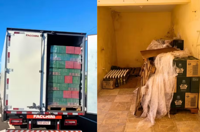 Segundo a PM, após receber informações sobre um furto de carga em deslocamento pela rodovia, as equipes intensificaram o patrulhamento e localizaram um caminhão suspeito. Durante a abordagem, os policiais encontraram paletes com garrafas de gin e bebidas alcoólicas gaseificadas, todas embaladas e prontas para comercialização.