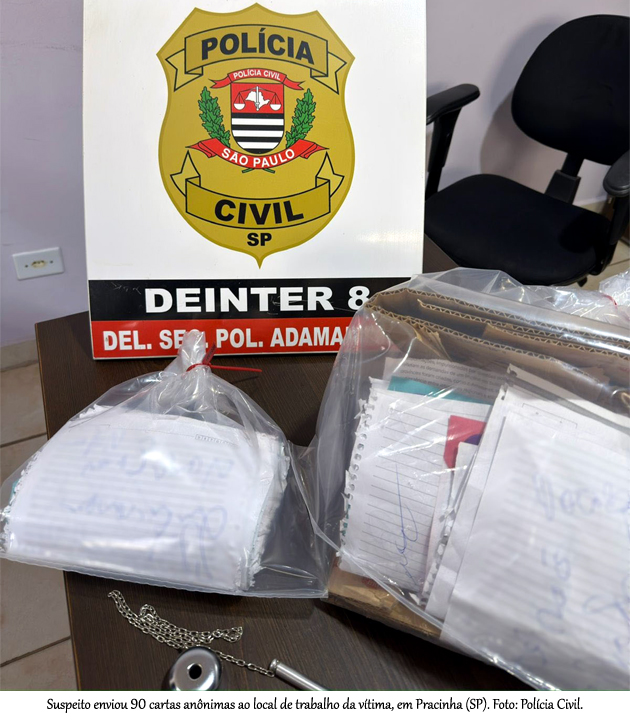 Com autorização do morador, os policiais entraram no quarto e encontraram dezenas de cartas manuscritas com o mesmo padrão gráfico e conteúdo das correspondências entregues à vítima. Diante das provas, o homem foi levado à Delegacia e autuado em flagrante.