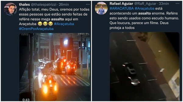 "Aflição total, meu Deus, oremos por todas essas pessoas que estão sendo feitas de reféns nesse mega assalto aqui em Araçatuba", escreveu um internauta.