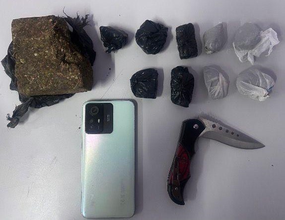 Com ele, foram encontradas duas porções de maconha já embaladas para venda.