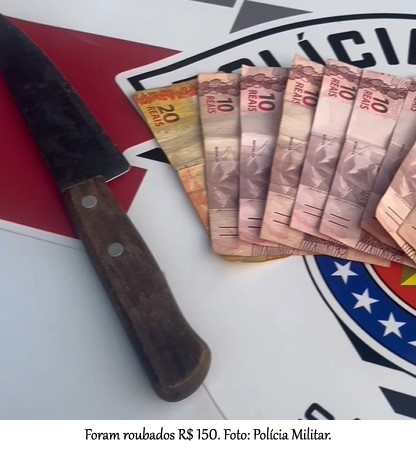 De acordo com informações da Polícia Militar, a dupla utilizou uma faca para intimidar a vítima e conseguiu levar R$ 150 antes de fugir.