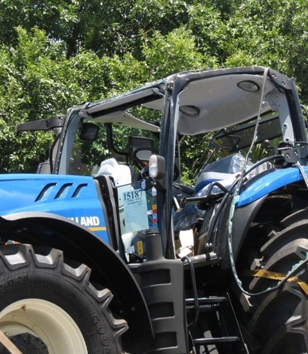 O Trator teve a cabine de vidros totalmente destruída. Ninguém se feriu.