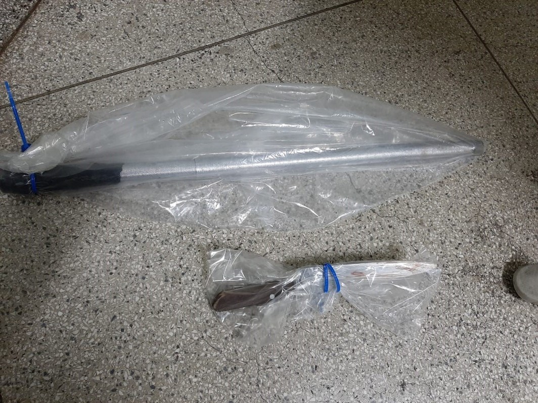 Durante a vistoria, os policiais encontraram uma faca suja de sangue com o indivíduo que era agredido.