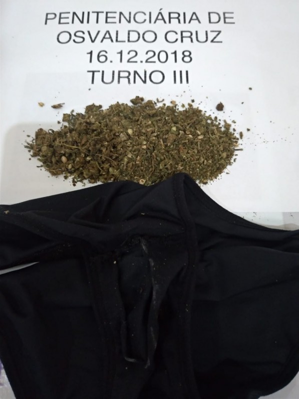 Neste domingo (16) durante os procedimentos de revista com uso do equipamento "Body Scanner", a visitante B.S.S., amásia do reeducando R.S.S., foi flagrada tentando adentrar nas dependências da Unidade Prisional de Osvaldo Cruz, portando maconha, que se encontrava oculta no forro da sua calcinha.