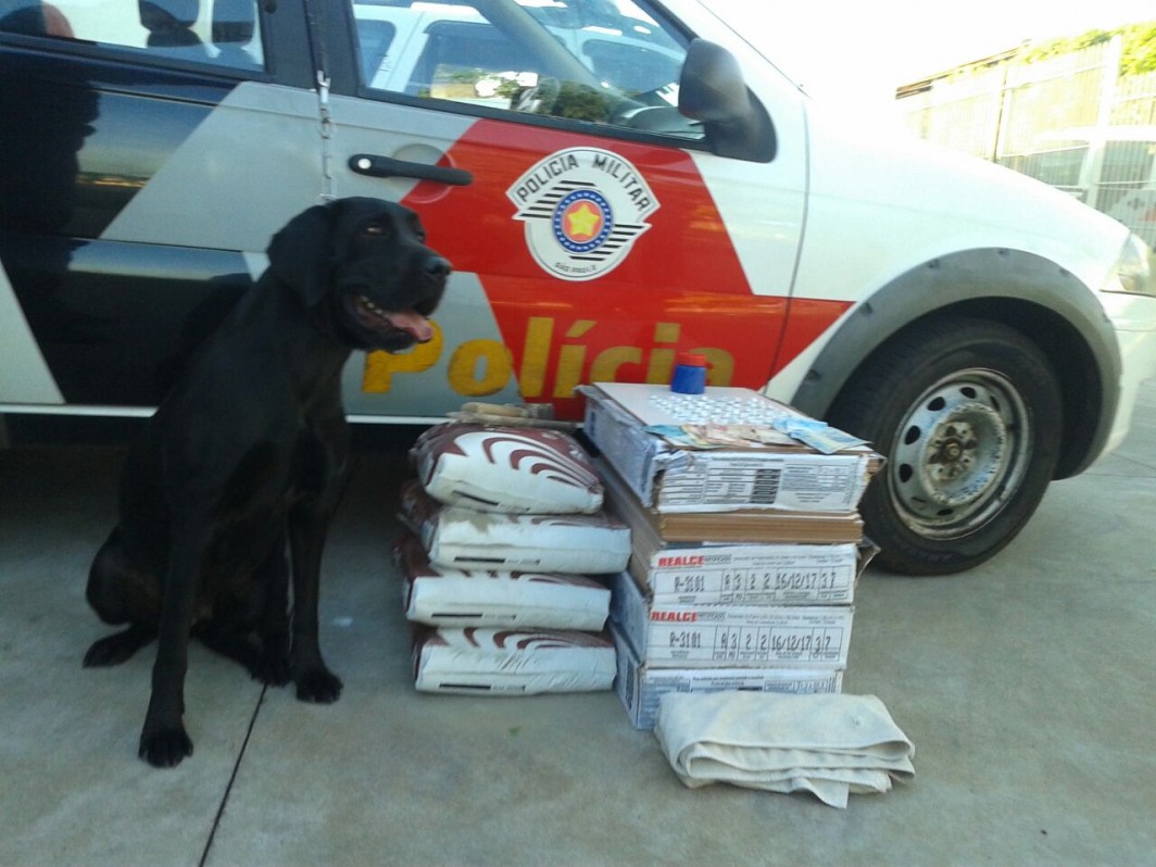 Os policiais se dirigiram até a referida residência, onde foram encontradas 5 caixas pisos, 4 sacos de argamassa, 1 marreta, 1 ponteiro, tudo que havia sido trocado por drogas.