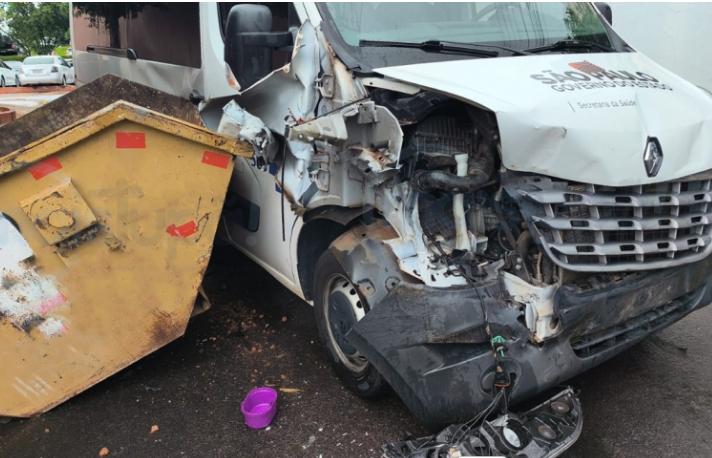 No início da tarde desta segunda-feira (15), o condutor de uma Van, da cidade de Sagres, ao sair do estacionamento da Santa Casa de Tupã, perdeu controle da direção e chocou-se violentamente contra uma caçamba na Rua Afonso Ponce.