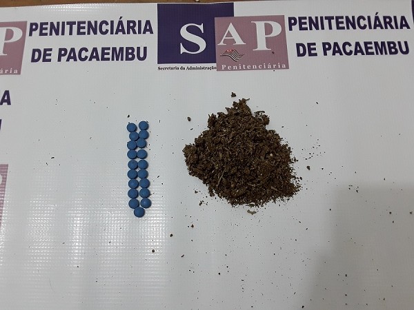 Ao visitar o marido na unidade prisional, a esposa de um sentenciado trouxe dois invólucros escondidos no cós da calcinha que continham porções de erva semelhante à maconha e 19 (dezenove) comprimidos azuis semelhantes a estimulantes sexuais. A polícia militar foi chamada e a visitante conduzida à delegacia para as providências de praxe, além de ser suspensa do rol de visitas. Foi instaurado procedimento disciplinar para apurar a cumplicidade do sentenciado, o qual se encontra isolado preventivamente em pavilhão disciplinar.
