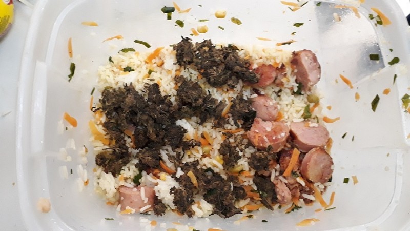 Ao submeter à revista a alimentação trazida para um detento, por sua mãe e irmã, agentes penitenciários encontraram dentro de uma vasilha de arroz com lingüiça várias porções de erva esverdeada, aparentando maconha. As mulheres foram suspensas do rol de visitas e levadas ao plantão policial para as providências necessárias.