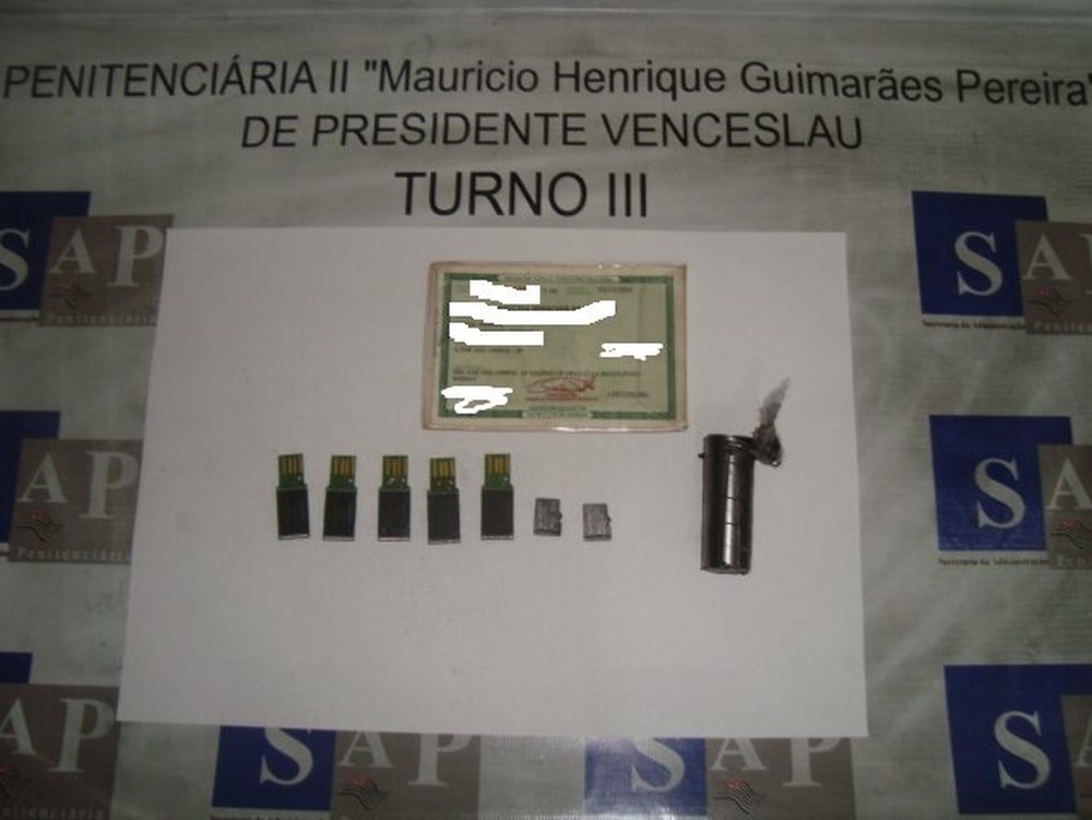 A segunda situação foi registrada após os agentes penitenciários identificarem imagem suspeita na região pélvica de uma visitante. Ela, ao ser questionada, admitiu que havia introduzido no canal retal cinco pen drives e dois cartões de memória.