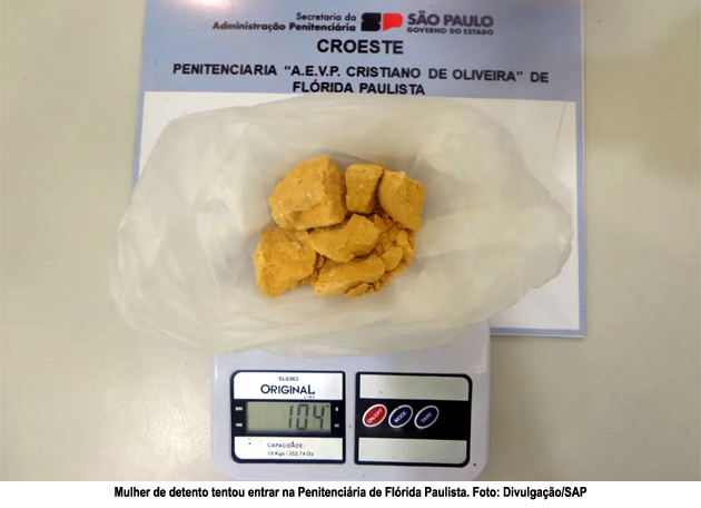 FLÓRIDA PAULISTA - Na Penitenciária de Flórida Paulista, a mulher de um detento foi flagrada portando uma porção de substância assemelhada à cocaína, quando tentava entrar na unidade no último sábado (2).
