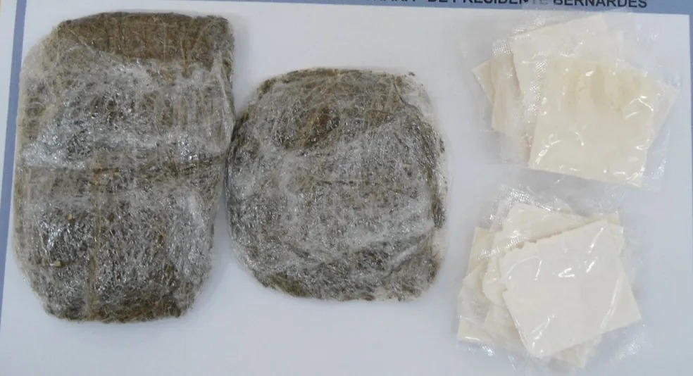 Em uma sala reservada, a visitante entregou 24 invólucros com um pó branco, que aparentava ser cocaína, e dois invólucros com uma substância esverdeada semelhante a maconha, que estavam camuflados no sutiã.