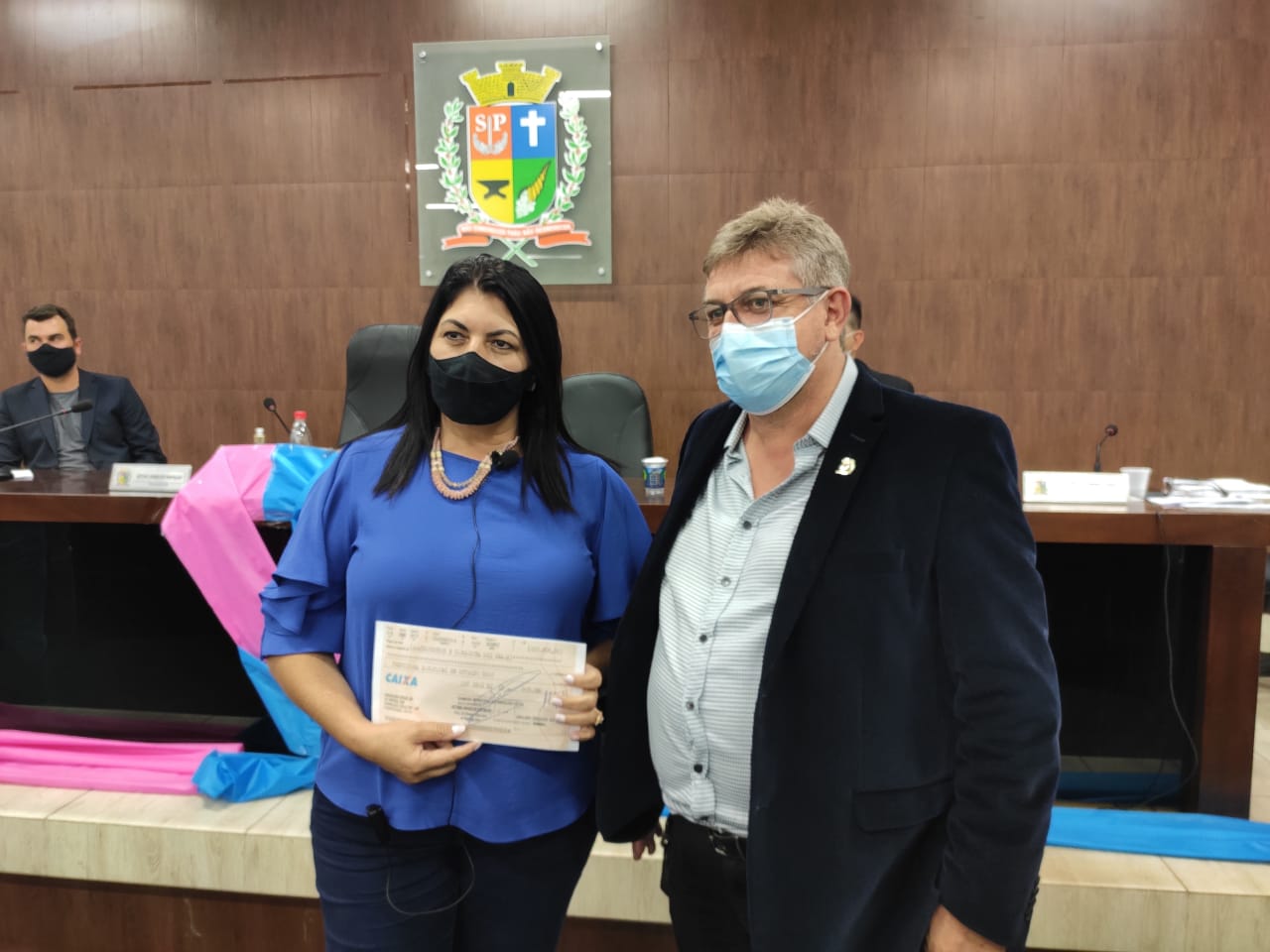 A prefeita Vera adiantou no momento da recepção do cheque que cerca de R$120.000,00 (cento e vinte mil reais) será investido para realizar melhorias de acessibilidade no prédio da Câmara Municipal.