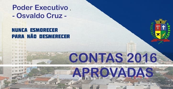 A Câmara Municipal de Osvaldo Cruz confirmou o parecer do Tribunal de Contas do Estado e da Comissão de Finanças e Orçamento a aprovação das Contas do Poder Executivo (prefeito Edmar Mazucato - PSDB) relativas a 2016.