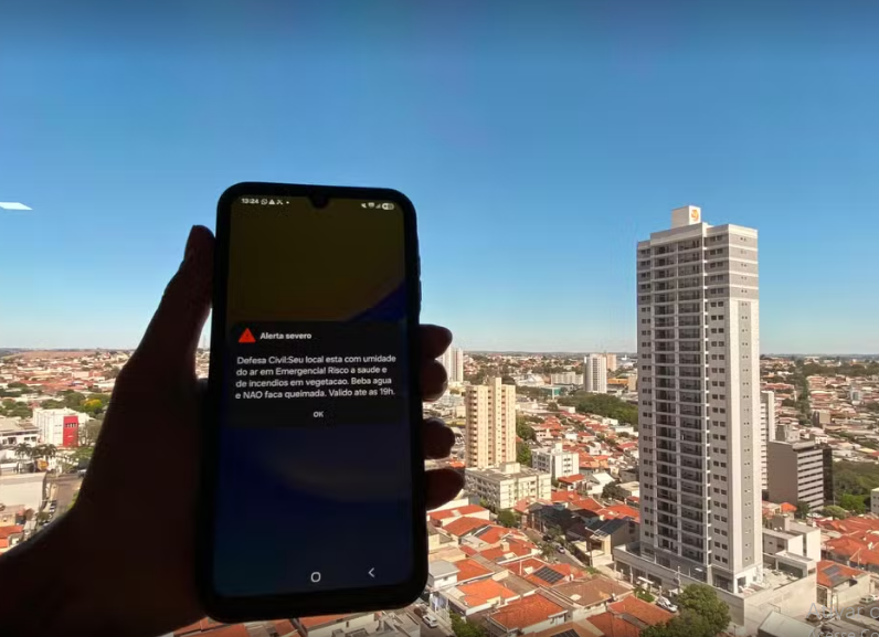O aviso, disparado por celulares por meio do sistema Cell Broadcast às 13h20 desta quarta-feira (10), destacou que cidades como Presidente Prudente, Bauru, Ourinhos e Botucatu estão em situação de emergência climática, com índices muito abaixo do recomendado pela Organização Mundial da Saúde (OMS).