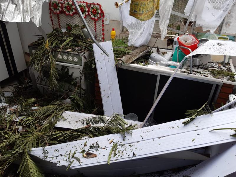 A manhã de quarta-feira foi de trabalho intenso para equipes do Corpo de Bombeiros e da Compedc (Coordenadoria de Proteção e Defesa Civil) em Martinópolis. Isso porque moradores de uma residência foram surpreendidos pela queda de parte de uma árvore que danificou a cozinha e a área externa.