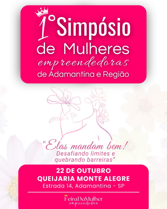Adamantina realiza na próxima terça-feira (22), o 1º Simpósio de Mulheres Empreendedoras de Adamantina e região na Queijaria Monte Alegre. Além da participação da cidade sede, a programação ainda contará com a presença dos municípios de Pacaembu, Lucélia, Mirandópolis e Campinas.