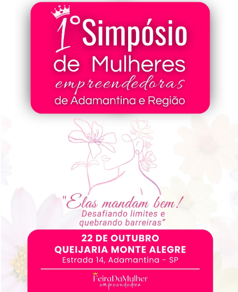 Estão abertas as inscrições para o 1º Simpósio de Mulheres Empreendedoras de Adamantina e Região. A iniciativa é voltada apenas para as mulheres que já participam das feiras em Adamantina e nas cidades de Pacaembu, Lucélia, Mirandópolis e Campinas.