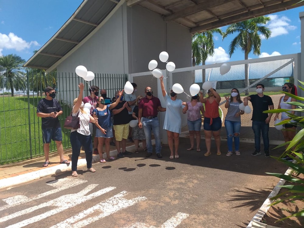 Ela integrou um grupo de 60 pessoas, todas moradoras do mesmo condomínio, que compareceram ao cemitério para se despedirem do artista. Em homenagem a Matheus, elas soltaram balões de ar brancos na entrada do local durante o sepultamento.