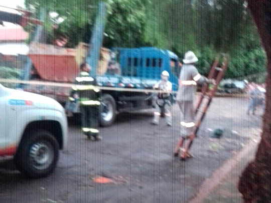 Durante manobra, um caminhão caçamba atingiu acidentalmente parte de uma árvore, no Jardim Adamantina. A vegetação, por sua vez, atingiu a fiação de energia elétrica, que caiu sobre o veículo. Sob risco de choque elétrico, o motorista ficou na cabine onde aguardou a chegada de socorro.