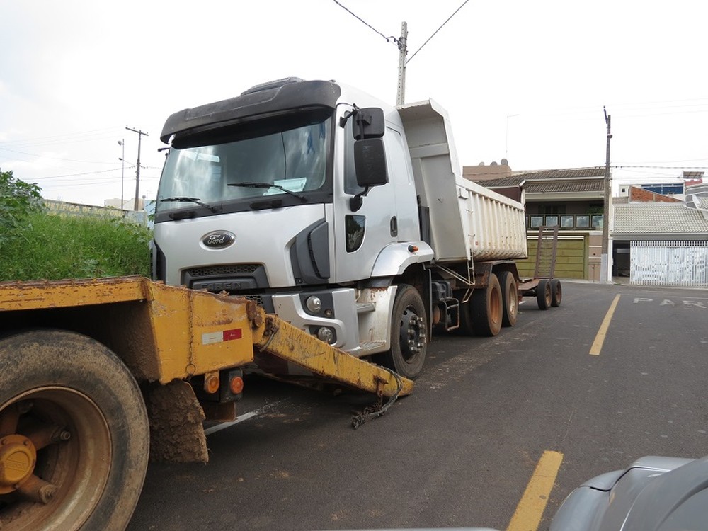 O caminhão transportava terra e ainda tinha uma carreta acoplada à sua parte traseira.