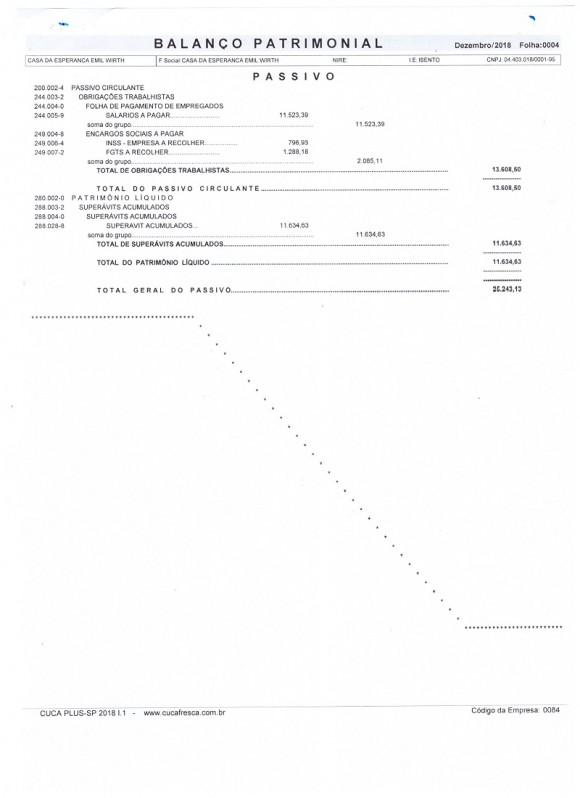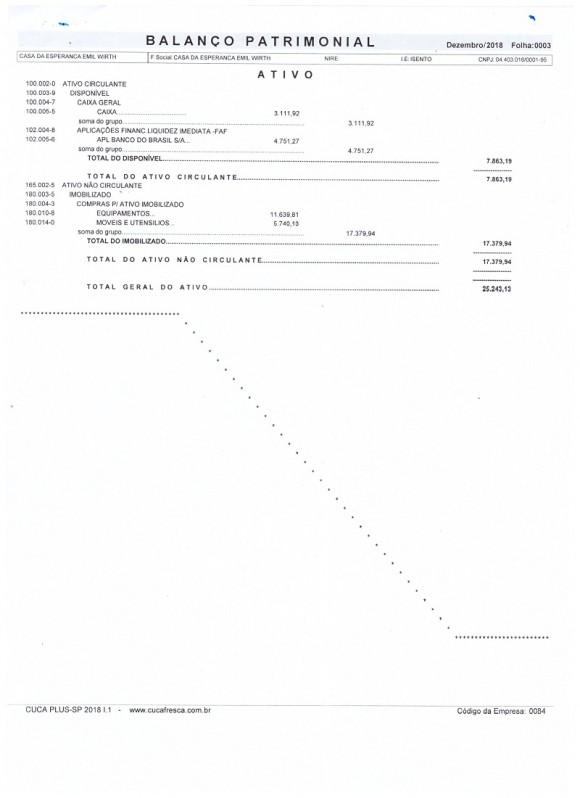 Segue o relatório de atividades realizado pela entidade no ano passado, juntamente com o balanço contábil referente ao exercício de 2018: