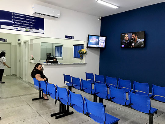 O público é atendido com hora marcada e recebido em uma recepção climatizada, com monitor de TV e monitor de senhas, onde cada paciente é chamado e encaminhado para a respectiva sala de atendimento.