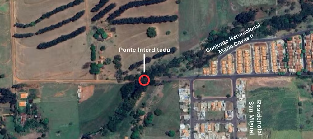A Coordenadoria Muncipal de Proteção e Defesa Civil interditou, nesta terça-feira (8), a ponte sobre o Córrego Caldeiras para o início de obras no local, no prolongamento da Rua Santa Catarina, no Conjunto Habitacional Mário Covas II, em Adamantina (SP).