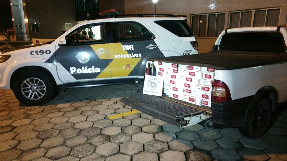 A PolÃcia Militar Rodoviária apreendeu 12 mil maços de cigarros contrabandeados do Paraguai, na madrugada deste sábado (2), no km 134 da Rodovia Jorge Bassil Dower (SP-421), em Nantes. Um homem de 37 anos, morador de MarÃlia (SP), que transportava a carga em uma picape Fiat Strada, foi preso em flagrante.