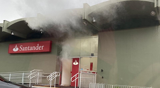 Na manhã desta terça-feira (22) a existência de fumaça saindo do interior da agência do banco Santander, no centro de Adamantina, chamou a atenção de quem passava pelo local. Havia uma densa fumaça saindo do interior do imóvel e alcançava a parte externa.