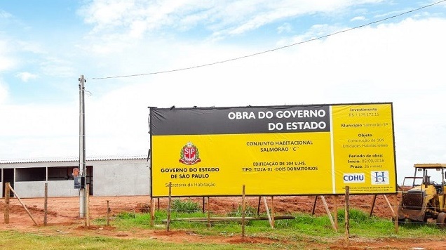 De acordo com informações do contrato, as 104 unidades habitacionais do tipo TI22A-01, com dois dormitórios cada, receberão um investimento total de R$ 7.179.172,15, como mostra o painel explicativo demonstrando outros dados sobre o investimento do Governo Paulista. O prazo final para a conclusão da obra é de até 36 meses (3 anos), podendo as casas serem entregues até meados de setembro de 2021.