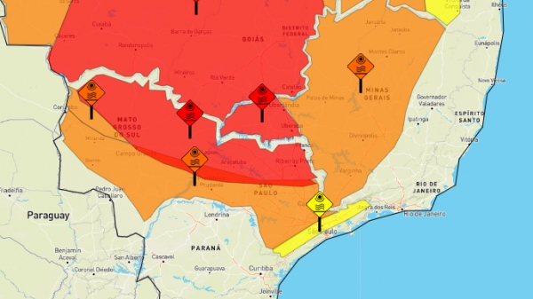 O primeiro alerta do Inmet trata a onda de calor com grau de severidade de “grande perigo”. O alerta tem vigência até quinta-feira (8), às 15h, e adverte sob riscos potenciais de hipertermia e morte, diante da exposição às altas temperaturas (veja o aviso).