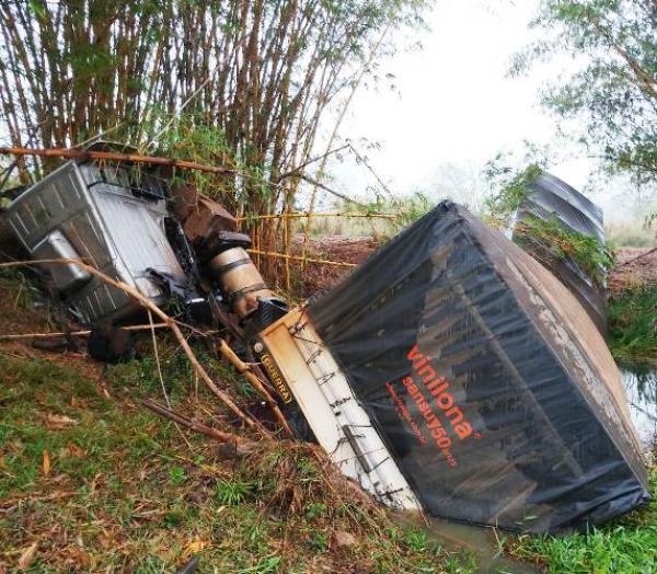Um caminhão que tracionava um bitrem com placas de Lucélia, acabou parando dentro de uma represa, após o motorista perder o controle da direção, invadir a pista contrária e cair em um barranco, por volta das 20h50 desta quinta-feira (20).