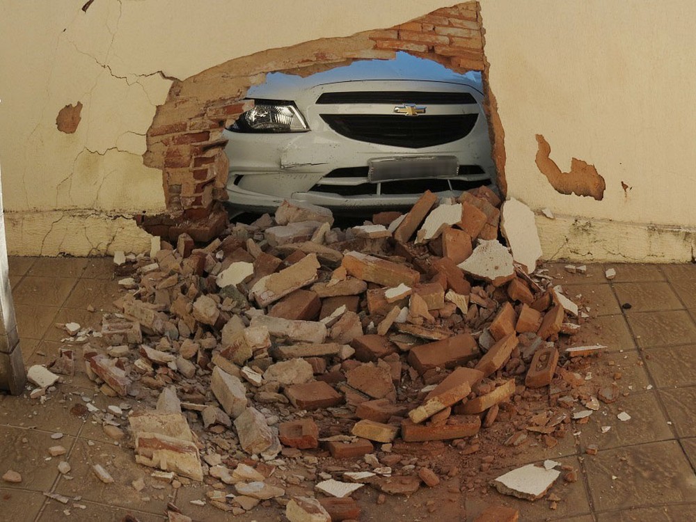 Segundo a PM, um homem de 72 anos, morador da casa atingida pelo carro, disse que estava dentro do imóvel quando ouviu um barulho forte e se deparou com o veículo invadindo o muro.