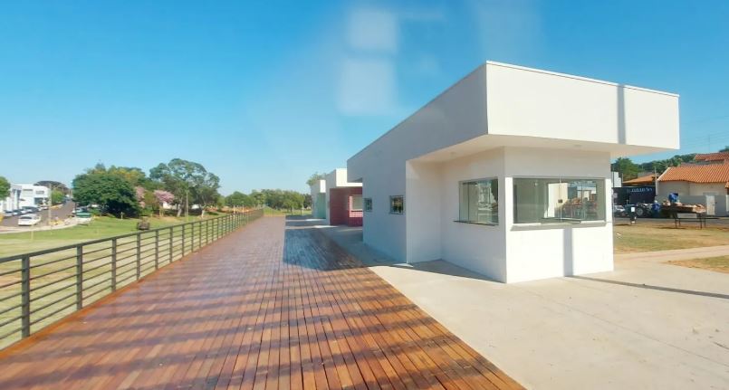 A obra ainda contempla a construção de deck em estrutura metálica, com assoalho em madeira e um acesso em calçada aos banheiros existentes.
