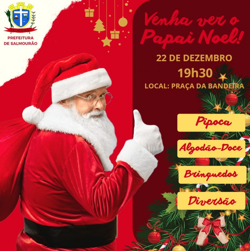 A Prefeitura Municipal de Salmourão, convida a população, e em especial as crianças do município, para participarem da noite de "Chegada do Papai Noel".