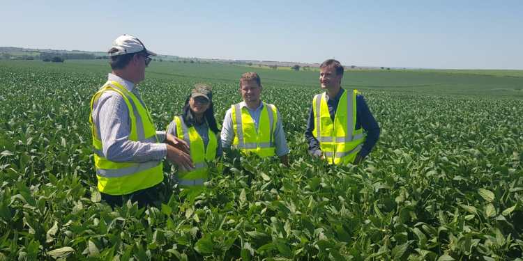 Segundo o professor Heinrichs, foi apresentado o vídeo institucional da Usina e, em seguida, foram para o campo conhecer o sistema de manejo do solo e culturas, para reforma do canavial com a cultura da soja, avaliando aspectos em relação à capacidade de uso do solo, rotação de culturas, cobertura do solo com palhada, manejo conservacionista e os reflexos positivos em produtividade da soja e cana-de-açúcar.