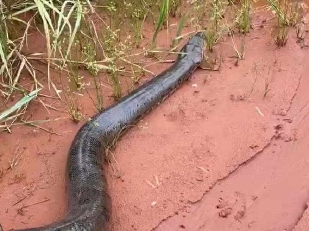 O Corpo de Bombeiros resgatou uma cobra sucuri (Eunectes murinus), com aproximadamente seis metros, em uma propriedade rural próxima ao bairro Duas Barras, em Junqueirópolis (SP)(assista ao vídeo acima).