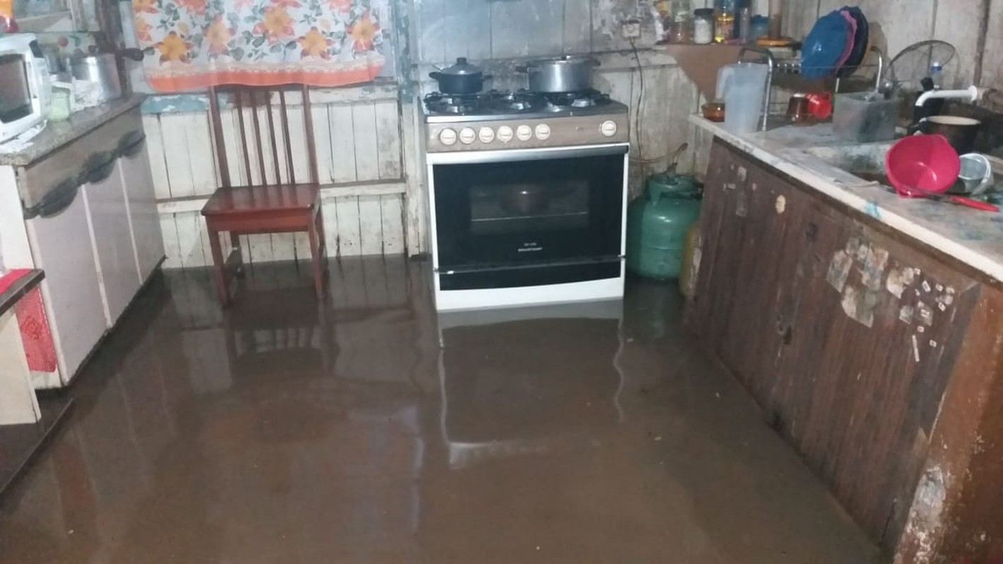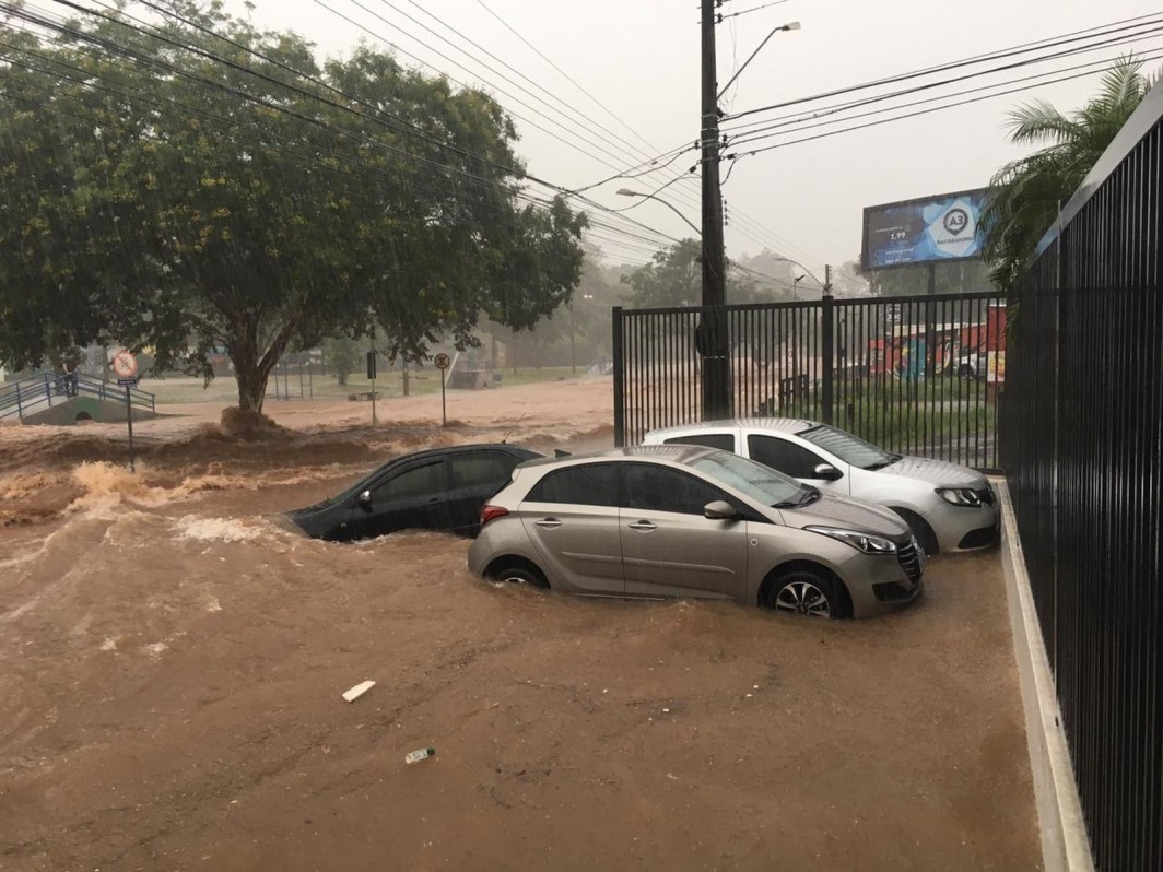 No Jardim Santa Eliza, o trânsito de veículos precisou ser interditado nos dois sentidos em decorrência do alagamento da Avenida Ana Jacinta.