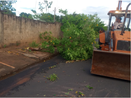 As equipes da Defesa Civil identificaram quedas de 8 árvores nos bairros Centro, Parque das Grevilhas, Cohab João Cordeiro e Portal Doutor José.