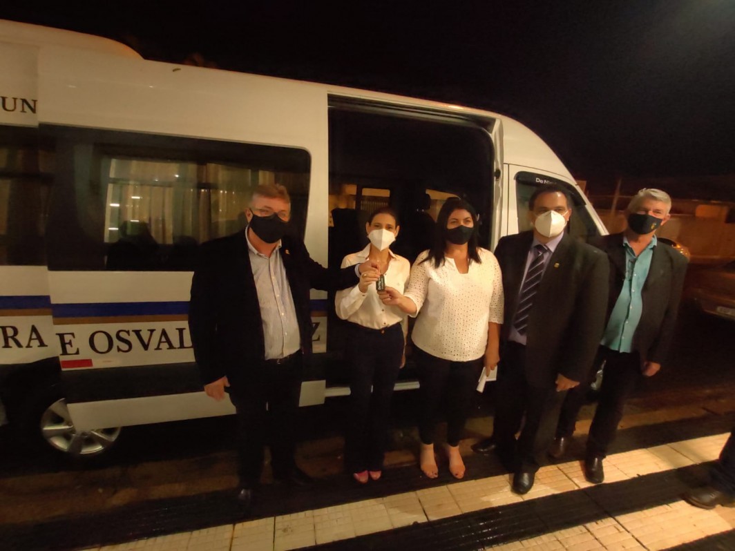A Prefeitura Municipal de Osvaldo Cruz recebeu, na noite da última sexta-feira (15), um novo veículo para a Secretaria Municipal de Saúde. Trata-se de uma Van, modelo executiva, com capacidade para 19 pessoas, com ar condicionado e bancos reguláveis, obtida por meio de emenda impositiva, de autoria do vereador e vice-presidente da Câmara, Roberto Amor Lhana, com colaboração dos vereadores Álvaro Belini, Valdemir Anselmo e os ex-vereadores Fábio Bertassi e Roberto Pazotto, na legislação 2017/2020.