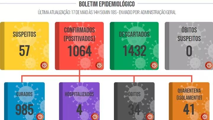 Foi registrado novamente um aumento de 15 casos positivos em relação a última atualização, ocorrida na sexta-feira, 14 de Maio.