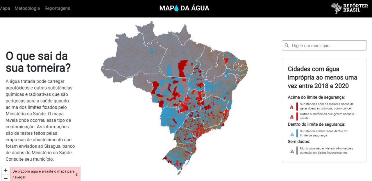 De acordo com o Repórter Brasil, os dados que compõem o mapa são resultados de testes feitos pelas empresas e instituições responsáveis pelo abastecimento, que integram a base de controle do Sistema de Informação de Vigilância da Qualidade da Água para Consumo Humano, o Sisagua, do Ministério da Saúde. Os dados foram interpretados de acordo com os parâmetros do Ministério da Saúde.