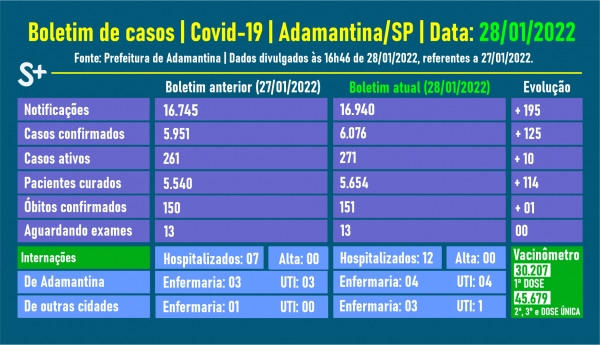 A Secretaria Municipal de Saúde de Adamantina divulgou no final da tarde desta sexta-feira (28) o boletim epidemiológico com a atualização de casos da Covid-19, onde informa a ocorrência de um novo óbito em morador local.